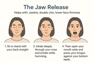 This exercise activates the platysma and jaw muscles, supporting a firmer, more defined lower face.